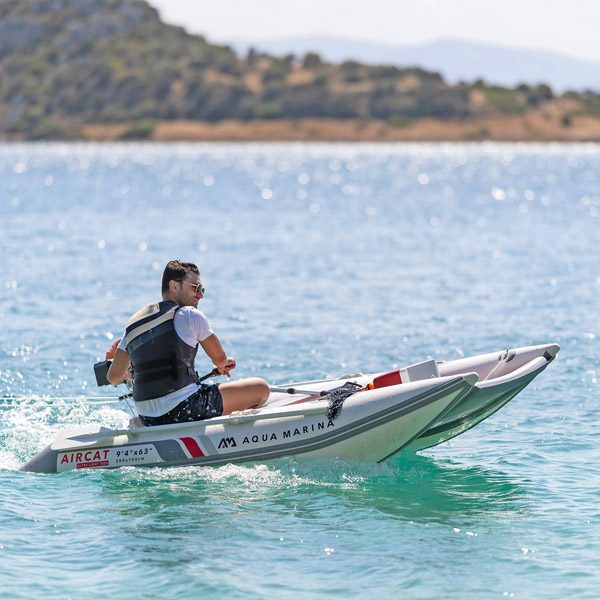 Das Schlauchboot AQUA MARINA Aircat 2,85 m ist ein aufblasbarer Katamaran mit besonders stabilem Rumpf und großzügiger Deckfläche. Durch das innovative Katamaran-Design bietet das Boot eine außergewöhnlich hohe Stabilität und eine maximale Traglast von 400 kg. Selbst bei höheren Geschwindigkeiten meistert das AIRCAT Wind und Wellen souverän.