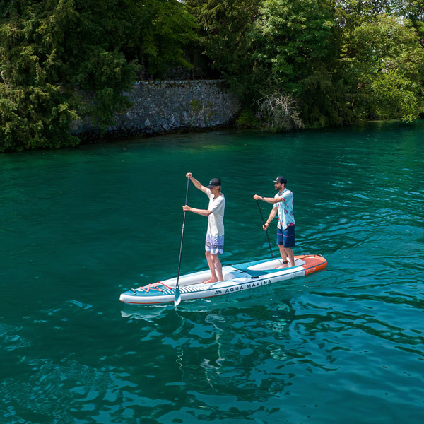 Die Drop-Stitch-Light-Technologie sorgt für hohe Steifigkeit bei gleichzeitig geringem Gewicht. Als SUP kann das Cascade Tandem in zwei unterschiedlichen Standpositionen gefahren werden. Das niedrigere Deck sorgt für maximale Stabilität, während das erhöhte hintere Deck eine bessere Übersicht und höhere Wendigkeit ermöglicht. Mit einer Traglast von 250 kg eignet sich das Board für nahezu alle Einsatzmöglichkeiten und kann sowohl alleine als auch zu zweit gefahren werden.