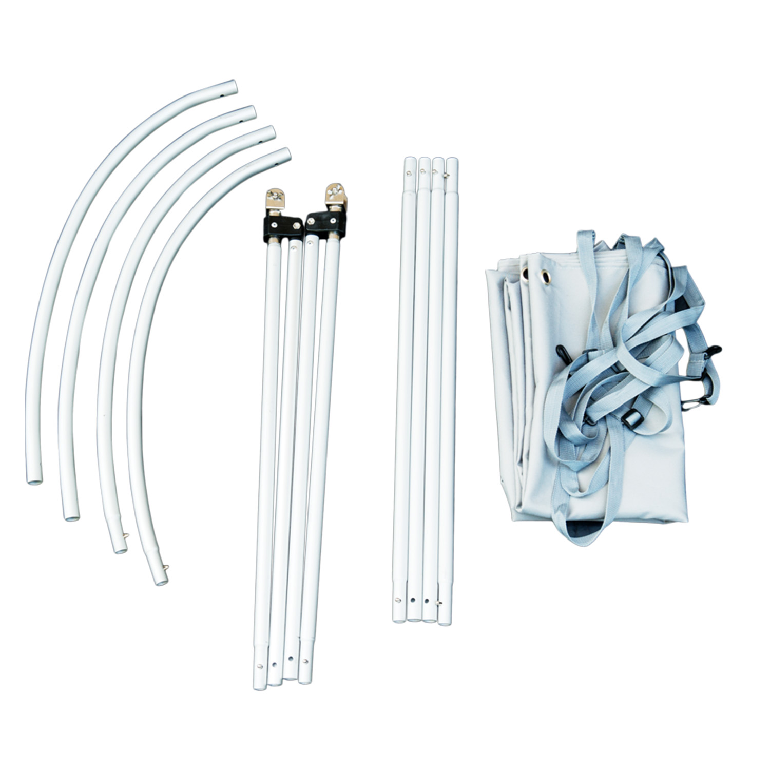 Das Sonnendach lässt sich innerhalb weniger Minuten montieren und bei Nichtgebrauch platzsparend zusammenfalten, wodurch es besonders einfach zu lagern und zu transportieren ist. Gefertigt aus strapazierfähigem 600D Polyester und stabilen Aluminiumrohren mit 18 mm Durchmesser, überzeugt das Canopy durch Langlebigkeit und Stabilität.