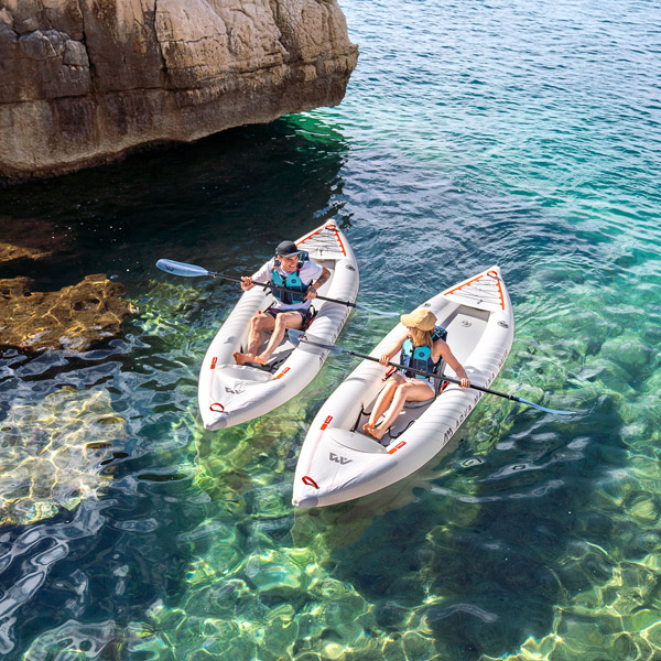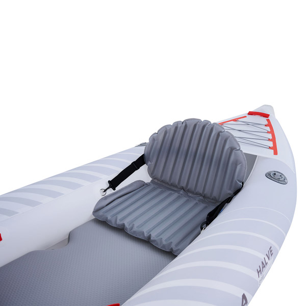 Die Gewichtsersparnis hat keinerlei negative Auswirkungen auf das Fahrverhalten – ganz im Gegenteil: Das Kajak bietet ein hohes Maß an Kippstabilität, einen guten Geradeauslauf und eignet sich auch für längere Touren. Die aufblasbaren Sitze bieten ausreichend Halt und Komfort, um weite Strecken bequem zurückzulegen.