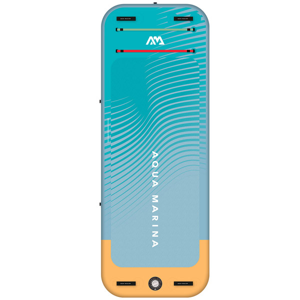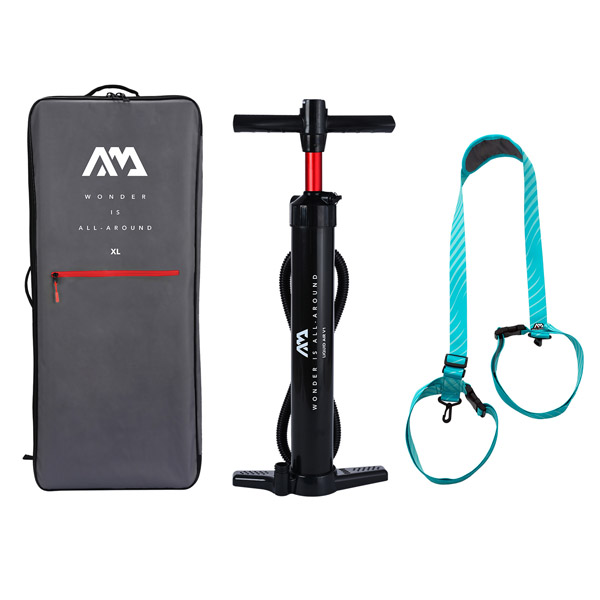 Das Aqua Marina Peace 8’2” wiegt 9 kg. Der Aufbau erfolgt über das zentrale Ventil mit der mitgelieferten Doppelhubpumpe. Nach dem Ablassen der Luft lässt sich das SUP kompakt zusammenrollen und in der Transporttasche verstauen. Die fünf Neoprengriffe erleichtern das Tragen, geeignet für Auto, Lagerraum oder Studioeinsatz.