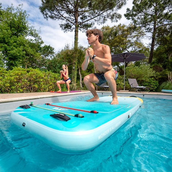 Die großzügige Breite sorgt für einen stabilen Stand und kontrolliertes Fahrverhalten auf ruhigen Gewässern. Das Board eignet sich für Schwimmbäder, Seen und ruhige Flüsse. Die hohe Steifigkeit durch den Drop-Stitch-Kern unterstützt Gleichgewichtsübungen und Fitness-Training auf dem Wasser. Die maximale Traglast beträgt 150 kg.