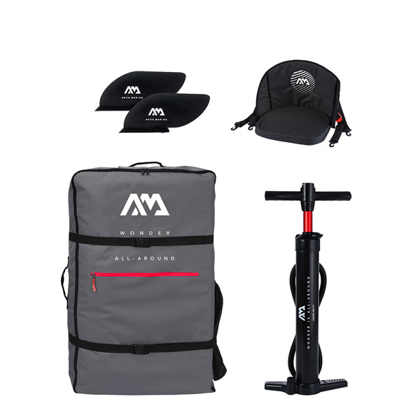 Das Aqua Marina Tomahawk AIR-K 375 wiegt 16,6 kg und ist in etwa 12–14 Minuten vollständig einsatzbereit. Die Griffe, die sowohl mittig als auch an beiden Enden des Kajaks angebracht sind, erleichtern den Transport. Die Deflate-Funktion der Doppelhubpumpe ermöglicht ein besonders einfaches Ablassen der Luft.