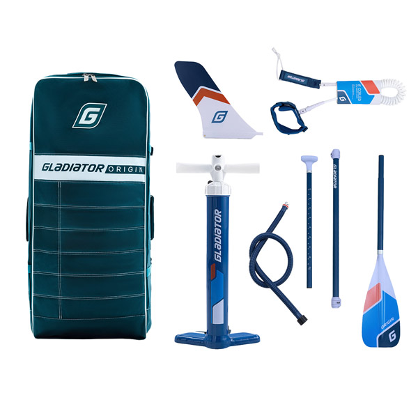 Mit einem Boardgewicht von ca. 11 kg ist das Gladiator Origin 12’6” T gut transportierbar. Der Aufbau erfolgt über das Ventil mit der mitgelieferten Doppelhubpumpe; 26 PSI sorgen für eine sehr hohe Steifigkeit und stabile Fahreigenschaften. Die Finne wird werkzeuglos montiert. Nach dem Entlüften kann das Board kompakt zusammengerollt und in der Transporttasche verstaut werden.