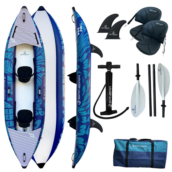 Das Spinera Duo 340 ist ein aufblasbares Allround-Kajak für bis zu zwei Personen und richtet sich ideal an Einsteiger und Gelegenheitspaddler, die Wert auf Komfort, Stabilität und einfache Handhabung legen. Dank des geringen Eigengewichts von nur 9,9 kg und der hohen Nutzlast von bis zu 160 kg ist das Duo 340 leicht zu transportieren und vielseitig einsetzbar.