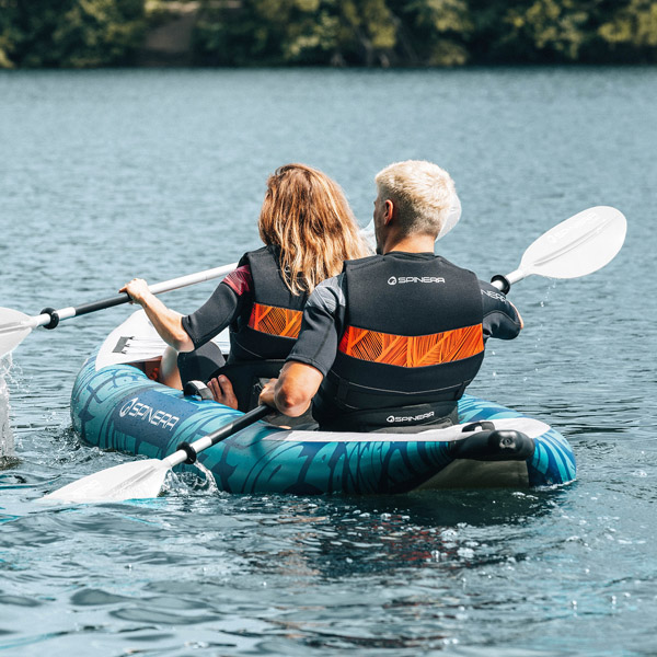 Durch die breite Bauform und den Drop-Stitch-Boden liegt das Spinera Duo 340 stabil im Wasser und bietet eine hohe Kippstabilität. Durch die zwei Finnen verbessert die Spurtreue und erleichtert das Geradeausfahren, auch bei längeren Strecken. Das Kajak eignet sich besonders für entspannte Freizeitfahrten und gemeinsame Ausflüge.Mit einer Länge von 340 cm, einer Breite von 90 cm und einer Höhe von 50 cm bietet das Kajak ausreichend Platz für gemeinsame Touren auf Seen, ruhigen Flüssen und geschützten Küstengewässern.