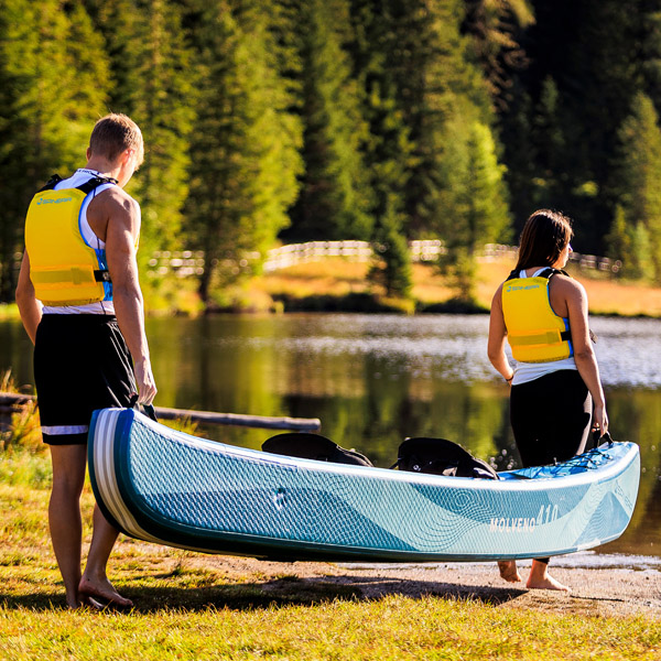 Das Spinera Molveno 430 ist in ca. 18 Minuten aufgepumpt und einsatzbereit. Vier geformte Tragegriffe erleichtern den Transport an Land. Das integrierte Wasserablassventil ermöglicht eine schnelle Entleerung nach der Nutzung. Zusammengepackt benötigt das Kajak deutlich weniger Platz als herkömmliche Feststoffkanus und lässt sich problemlos im Auto, Keller oder in der Wohnung verstauen.
