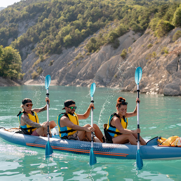 Das Spinera Tenaya 160 ist in ca. 18 Minuten aufgepumpt und einsatzbereit. Mehrere geformte Tragegriffe erleichtern den Transport. Ein Wasserablassventil ermöglicht die schnelle Entleerung nach der Nutzung. Zusammengepackt benötigt das Kajak deutlich weniger Platz als herkömmliche Feststoffkanus – ideal für Auto, Wohnung oder Keller.